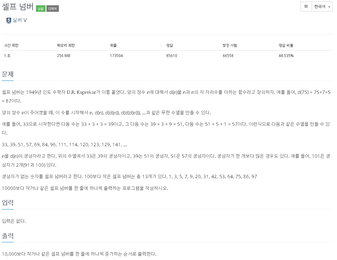 https://www.acmicpc.net/problem/4673